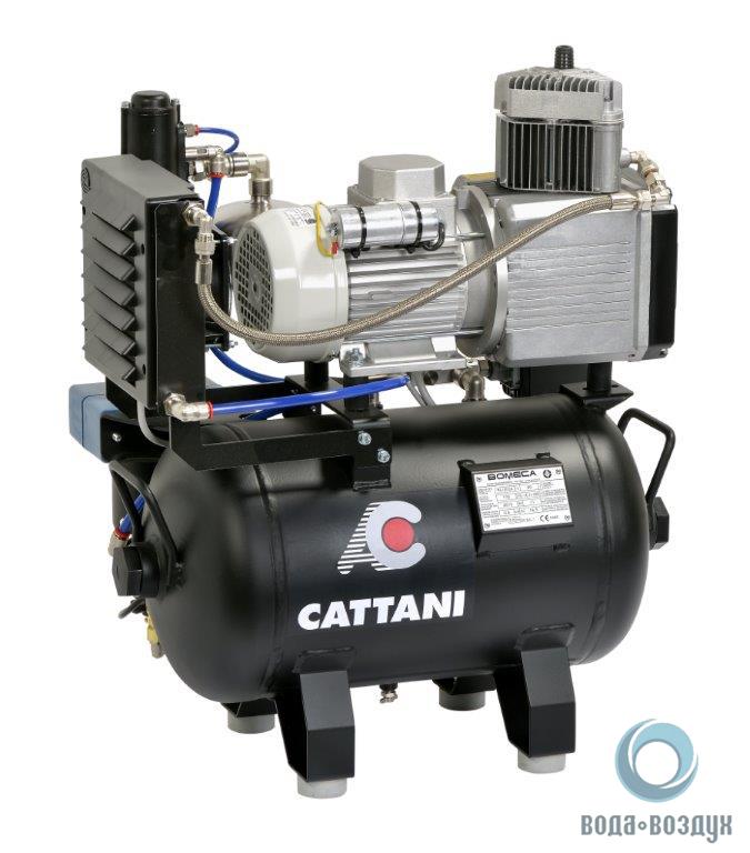 Компрессор стоматологический CATTANI на 1 установку - одноцилиндровый, безмасляный, оборудованный системой фильтров и охлаждения, обеспечивает подачу сжатого сухого воздуха наивысшего качества и чистоты.