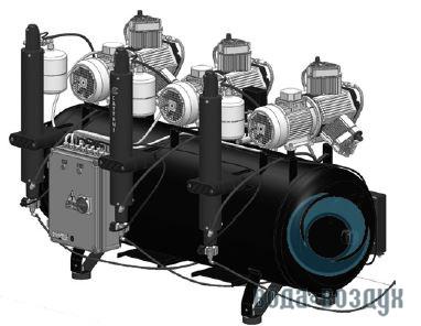 Компрессор на 12 установок, с 3-мя 3-х цилиндровыми двигателями, с 3-мя осушителями, ресивер, 300 л, 714 л/мин.